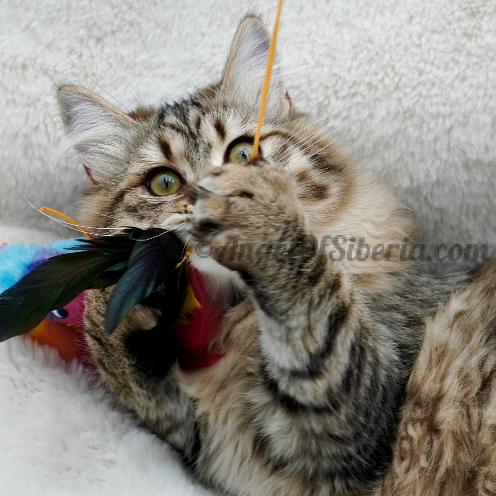 Her eyes are bright green and curious, often glowing a shade of gold. Graceful yet playful, she carries herself with confidence and a gentle affectionate nature. we are impressed with how she develops and cant wait to see what kittens she can produce.